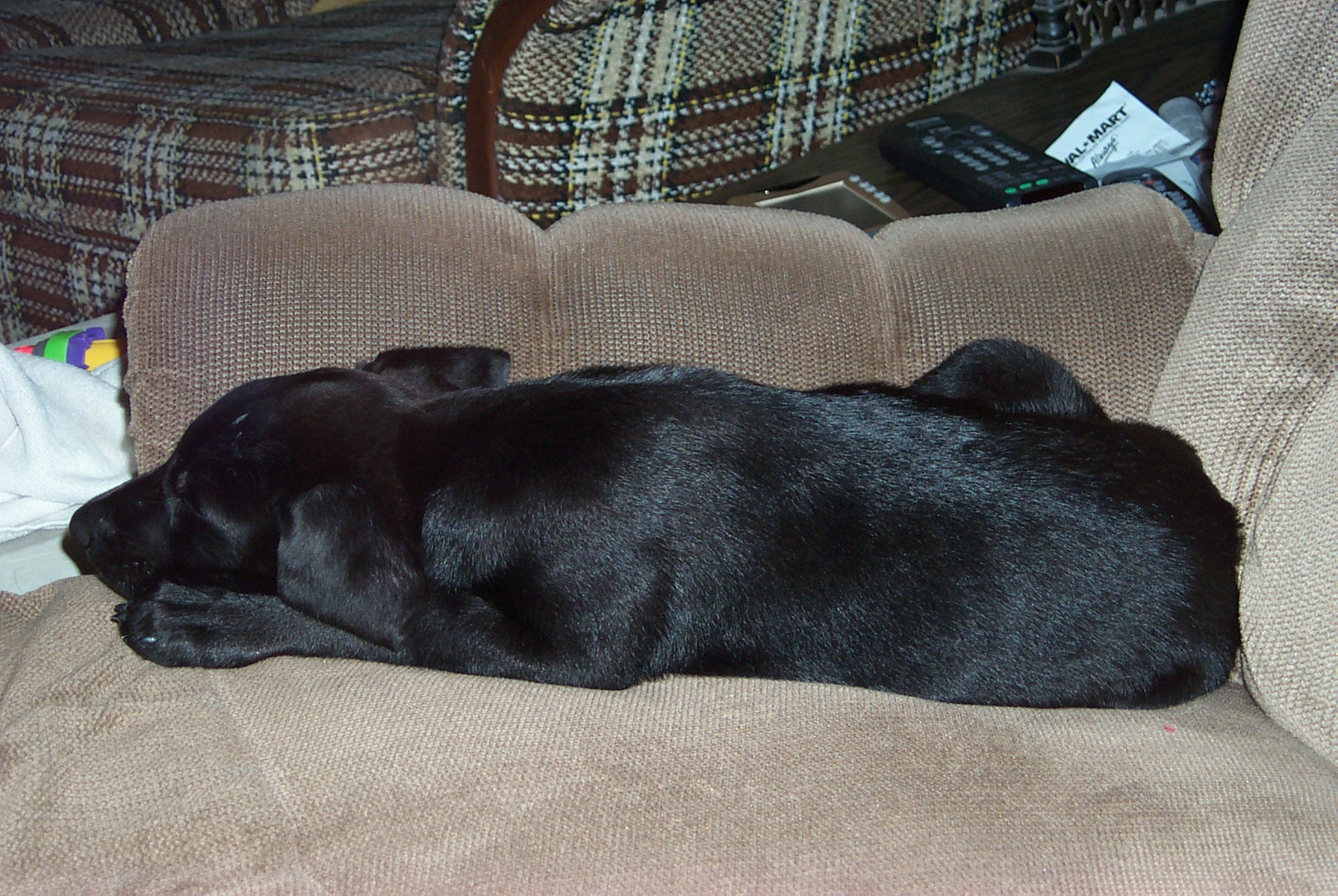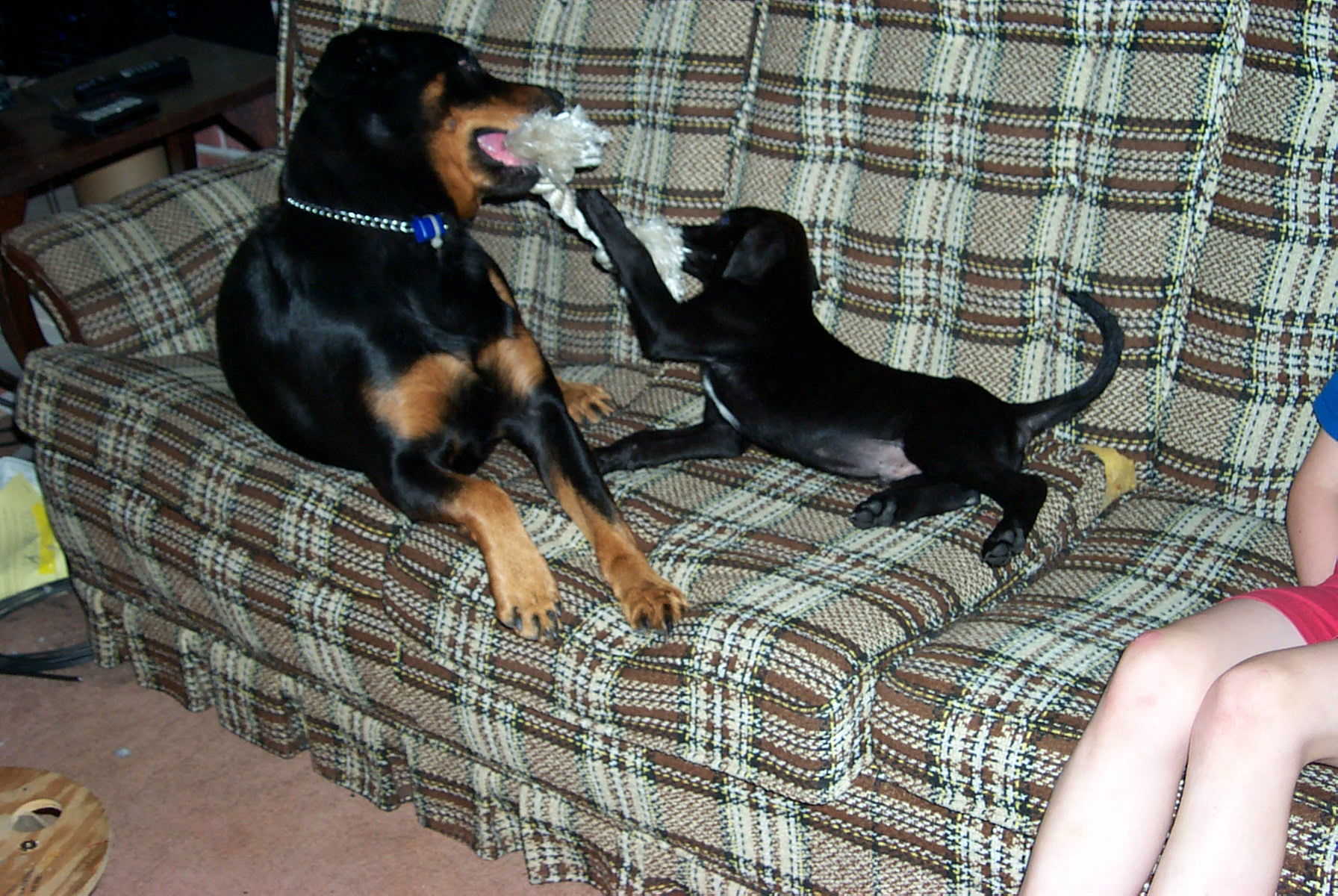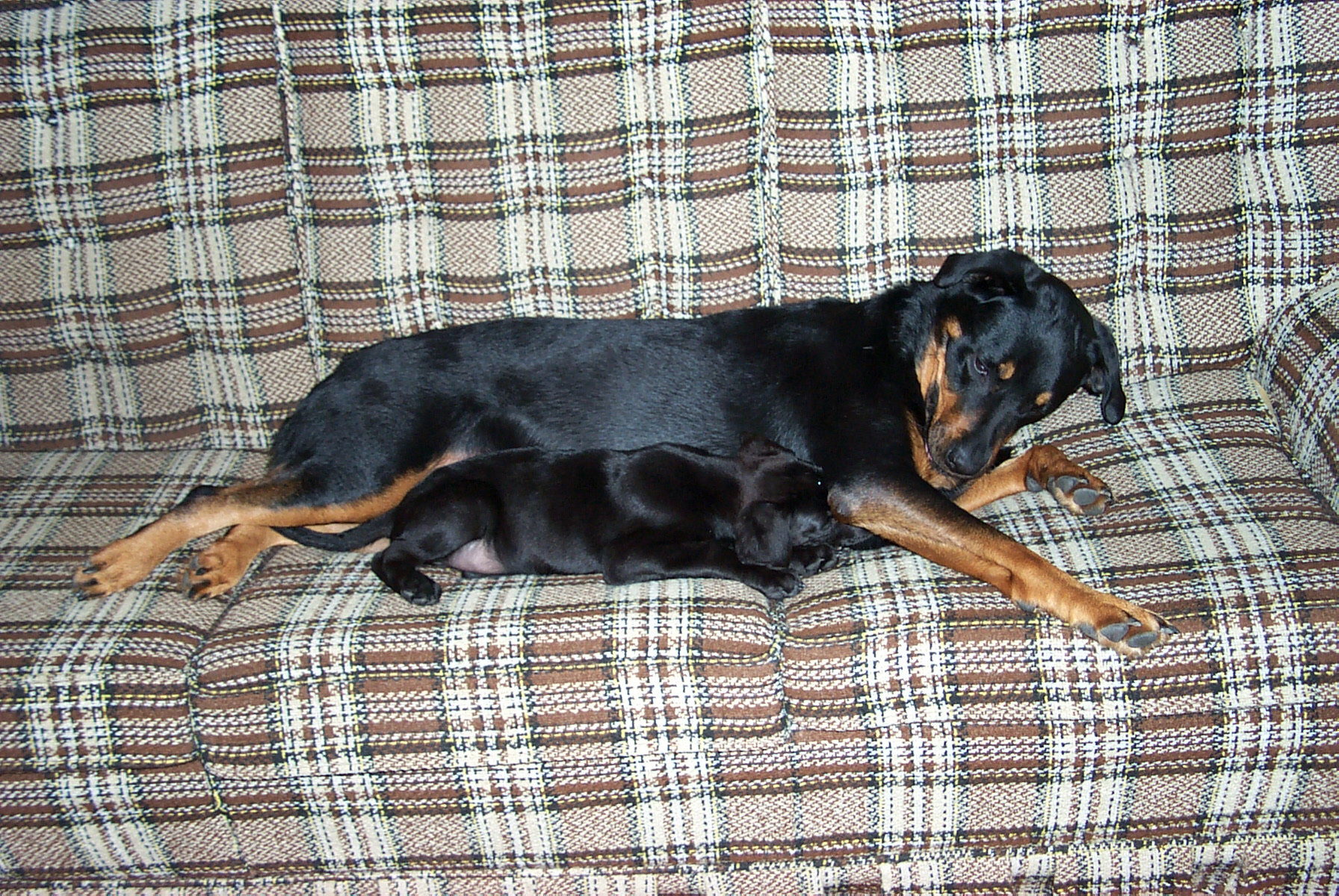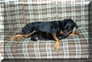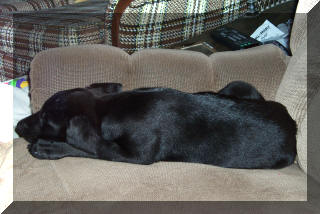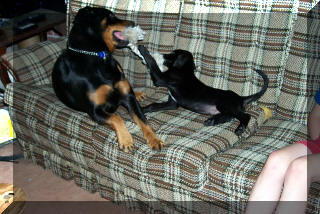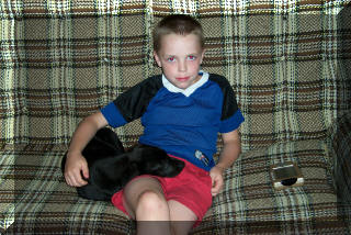 Jean-Luc at age 4, with our '95 Jeep Wrangler: This is what happens when the dog is bigger than you are: (Jean-Luc was on the couch and now Tabby is.)