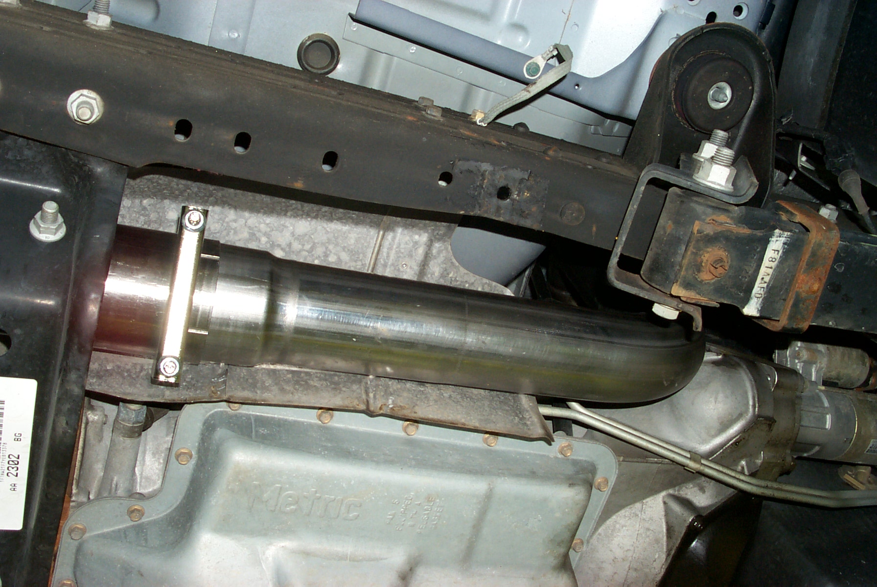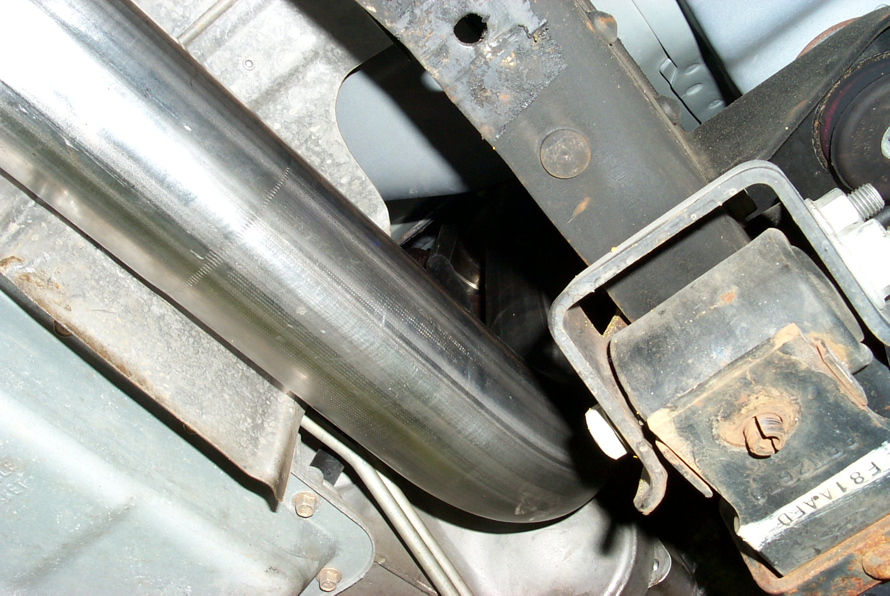 This shows the clearance problem I mentioned above, regarding the down pipe and the transmission.