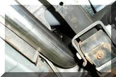 This is the last intermediate pipe.  The original exhaust had one long pipe.  I had to relocate the hanger mount on the frame for this bracket.  The holes were pre-drilled in the frame.  The original location is in the top left of the picture - the they have dark black rings around them.  Notice how the hanger is longer than the hanger on the middle intermediate pipe.  This is why this pipe had to be located in the rear - different than the instructions indicated.
