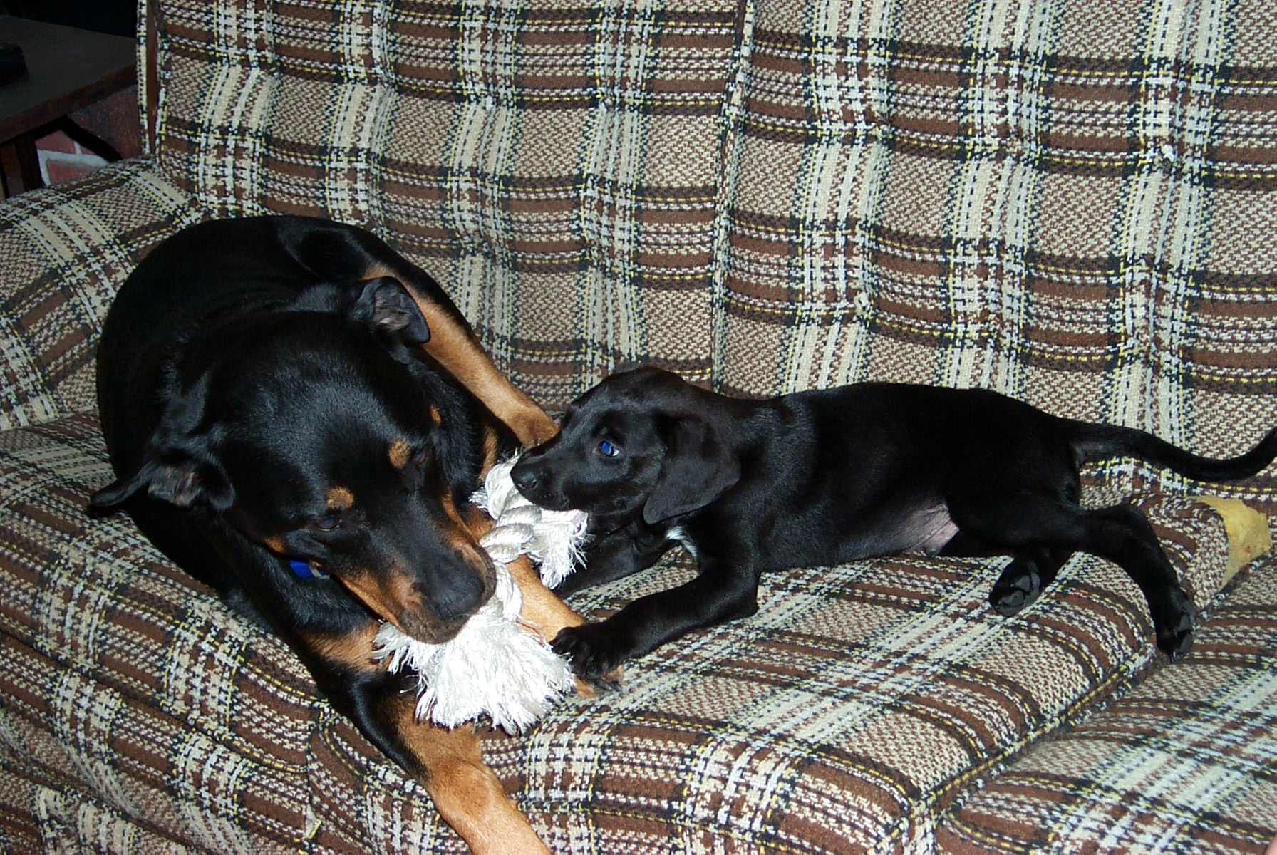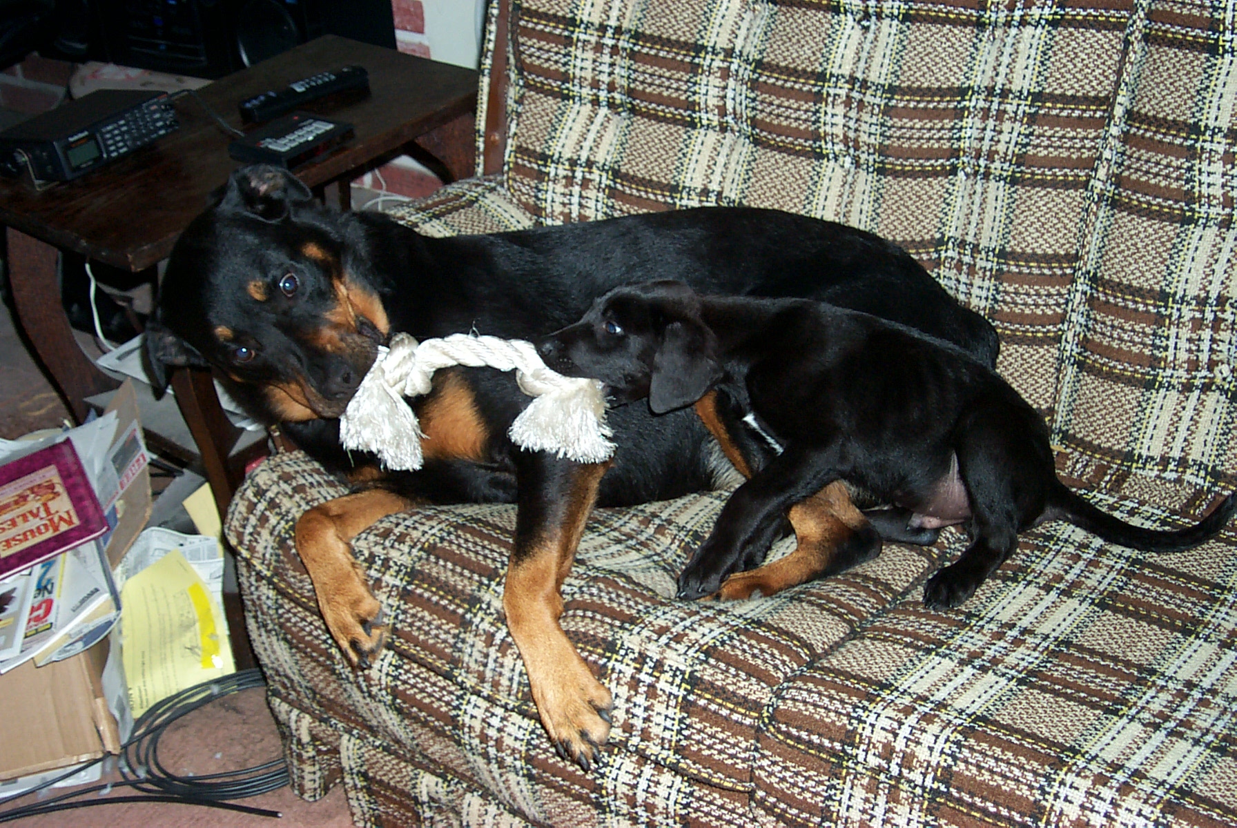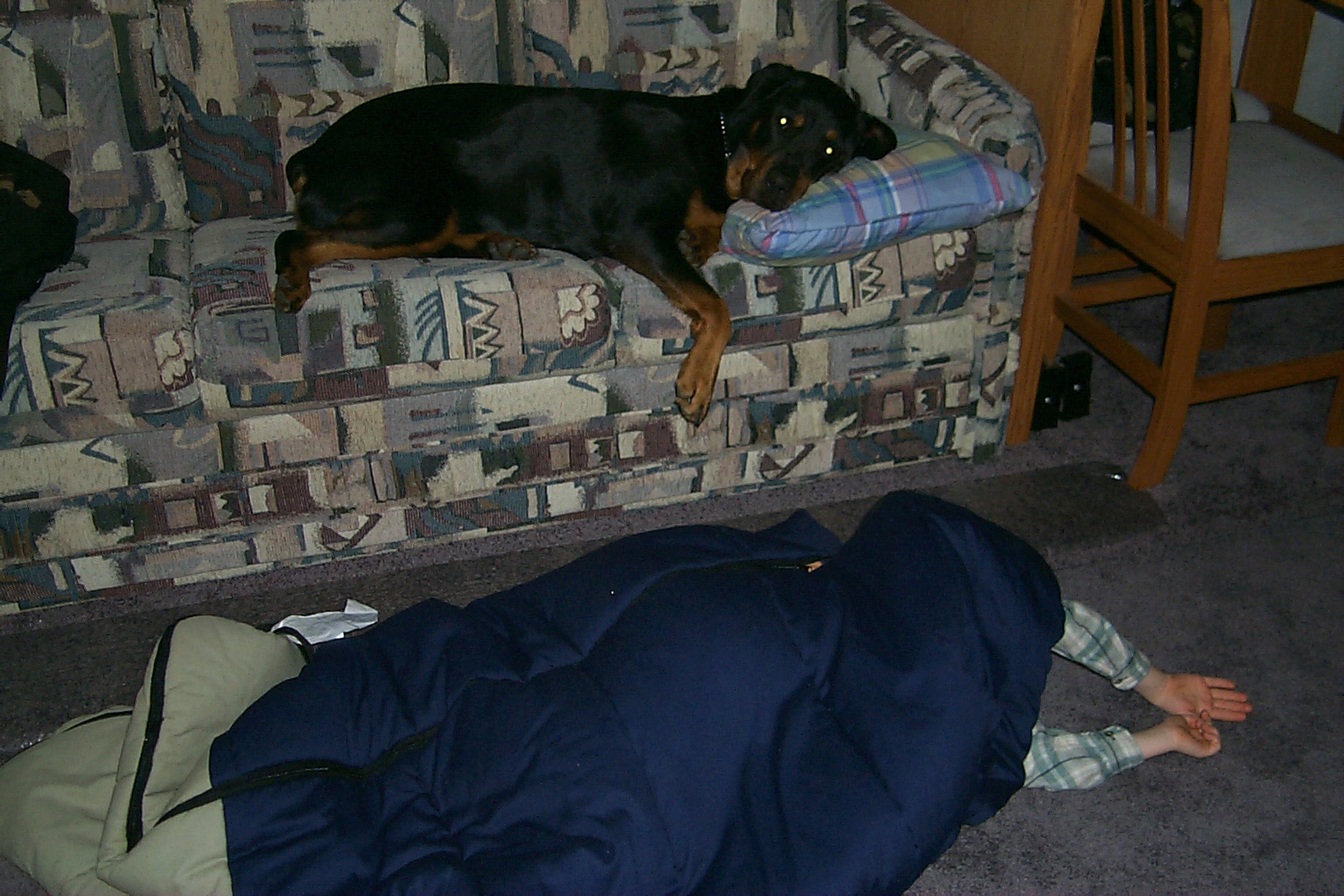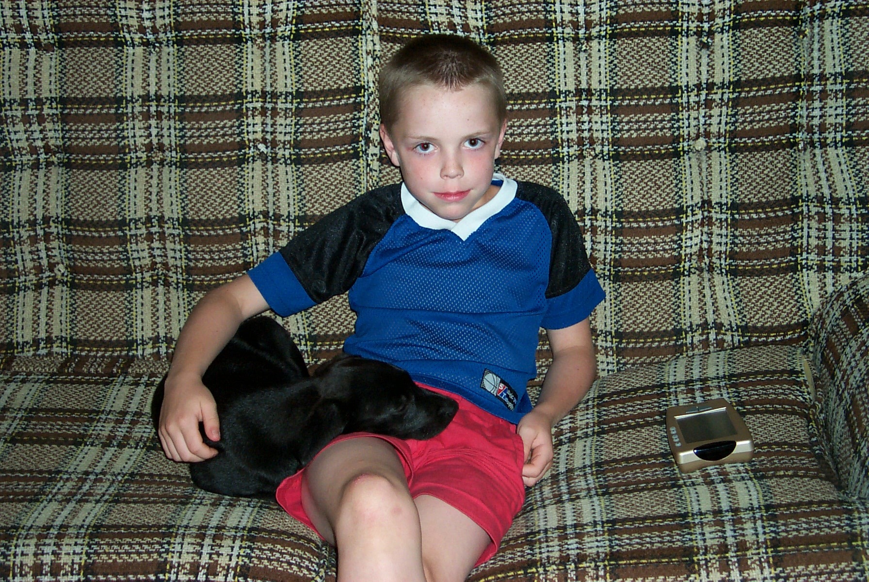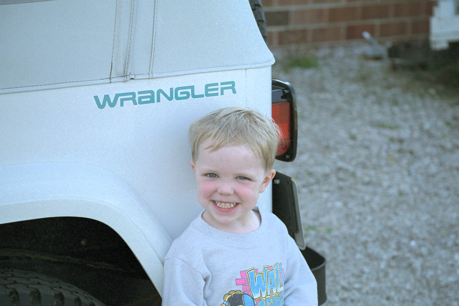 Jean-Luc at age 4, with our '95 Jeep Wrangler:           This is what happens when the dog is bigger than you are:
