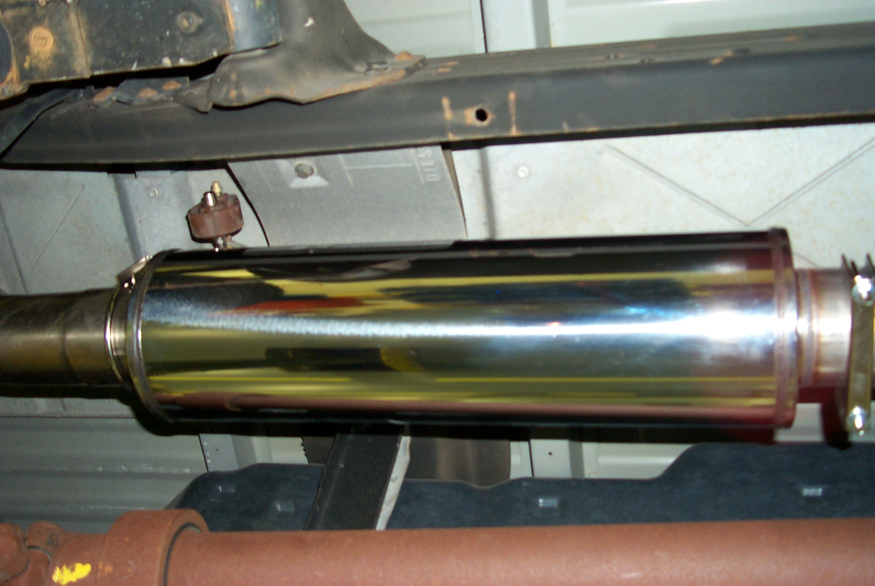 This is the nice, polished muffler/resonator. I refer to it as a